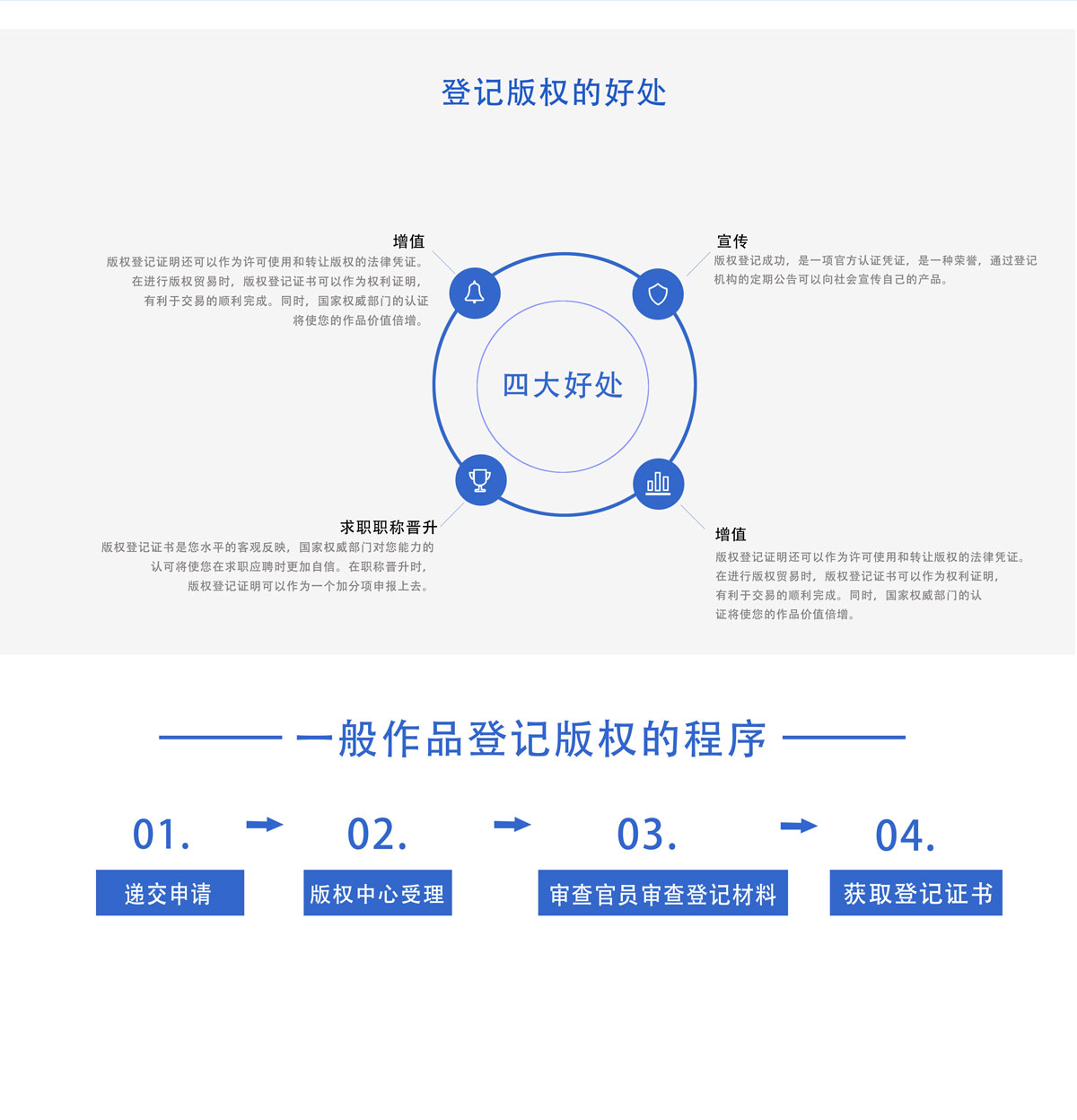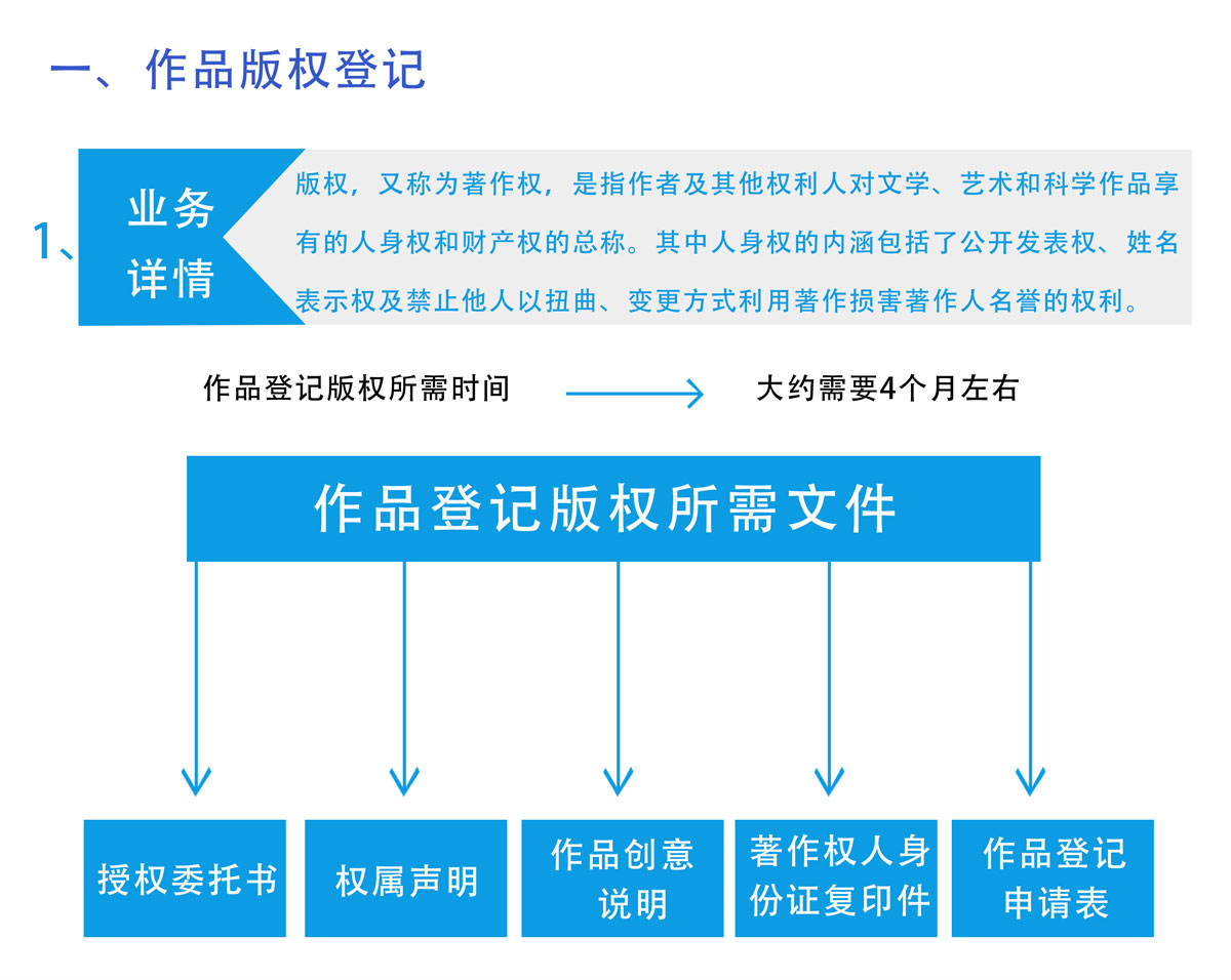 版权登记涉及著作权法第三条所列的作品,如文字作品、口述作品、美术摄影作品、影视作品、音乐作品,录像作品、工程和产品设计图纸及其说明等。版权登记包括以下列形式创作的文学、艺术和自然科学、社会科学、工程技术等作品。
